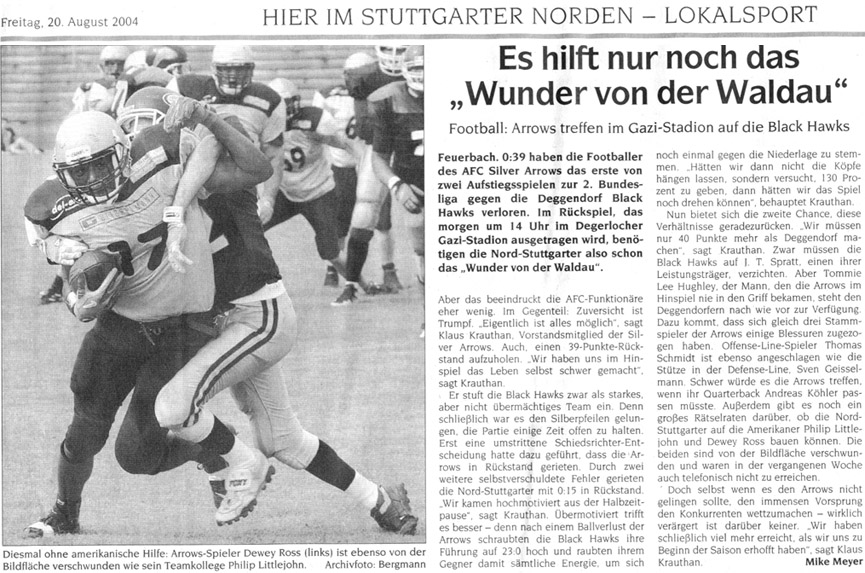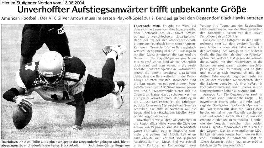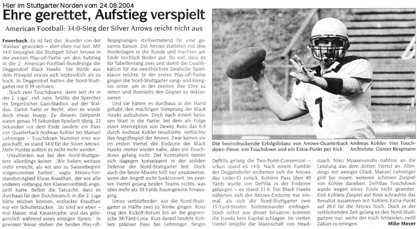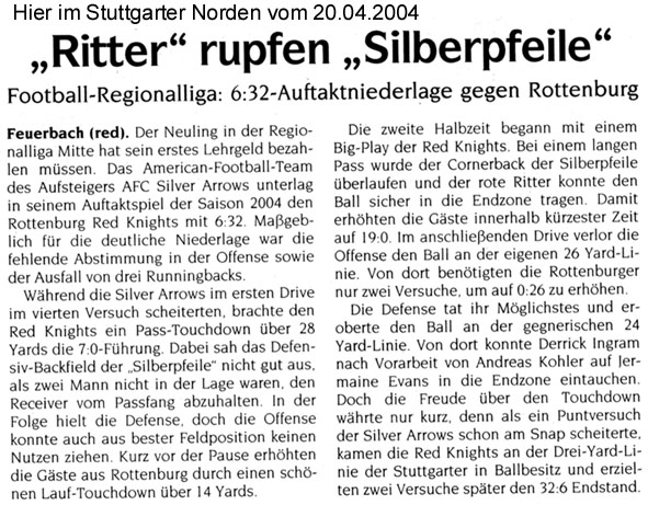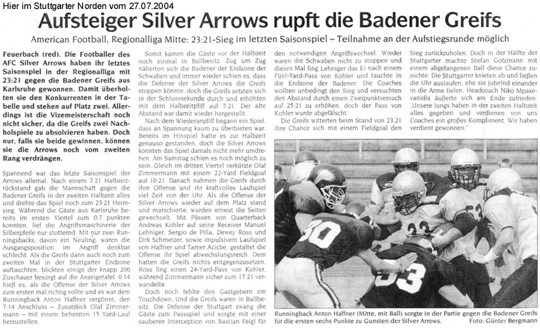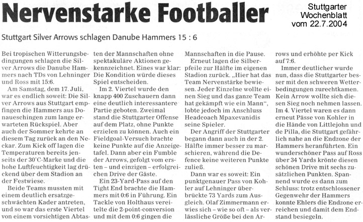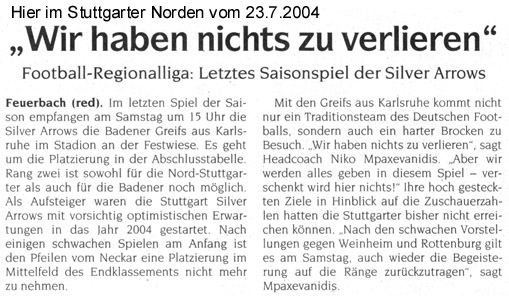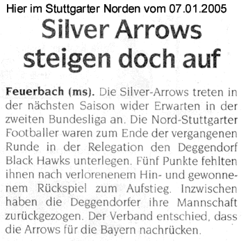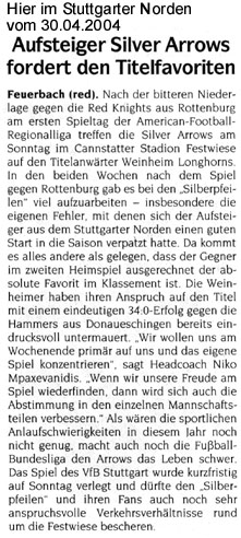 Lesen Sie hier, was die Presse über die Silver Arrows schreibt.Oder über Football im Allgemeinen.In der Rubrik “Bilder” finden Sie Fotos für Ihre Berichte (im Aufbau - wird sukzessive erweitert).