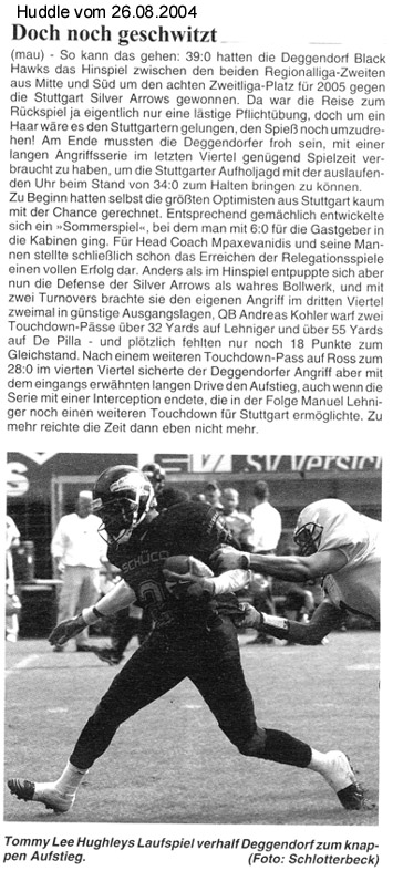 Auszug aus dem Huddle vom 26.08.2004